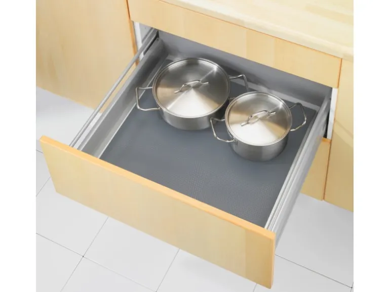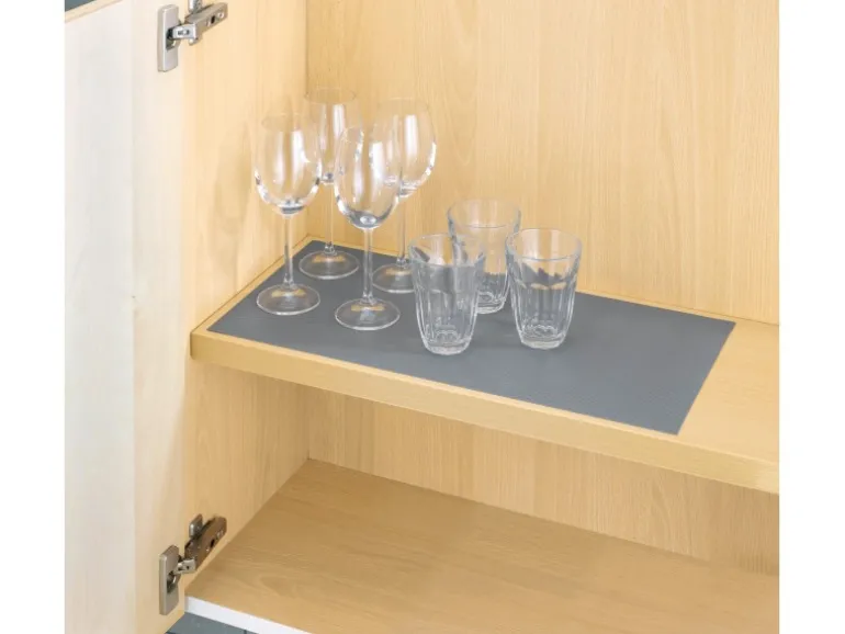 Idealer Rutschstopp für alle Schränke und Schubladen: die extra starke Anti-Rutsch-Matte. Die praktische Matte sorgt für sicheren Stand von Gläsern, Töpfen und Kleinteilen. Alles kann sicher und funktional verstaut werden. Zudem wirkt die Matte geräuschdämpfend. Sie kann auf jede beliebige Länge und Breite zugeschnitten werden und bringt mit ihrem Grau trendige Akzente in jede Küchenschublade. Die Anti-Rutsch-Matte mit Noppen ist aus strapazierfähigem Kunststoff gefertigt und besonders stark.