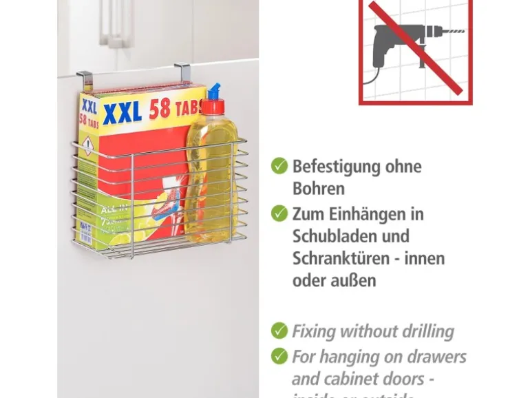 Der dekorative Sammler aus verchromtem Metall wird einfach an Schublade oder Schranktüre innen oder außen eingehängt.