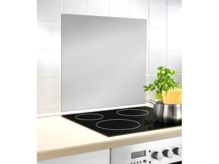 Herd-Wandblende aus hochwertigem, gehärtetem Glas in Silber