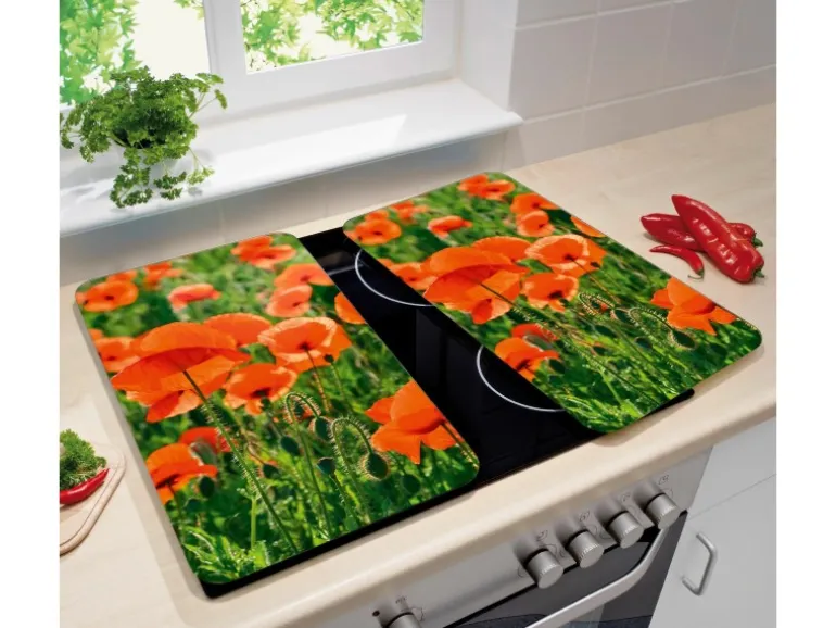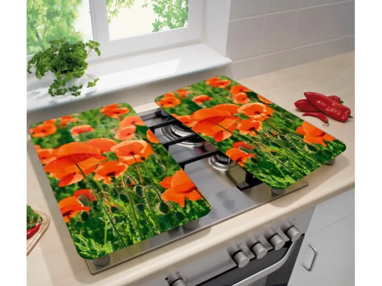 Wenko Herdabdeckplatte Universal Mohnfeld 2er-Set für alle Herdarten