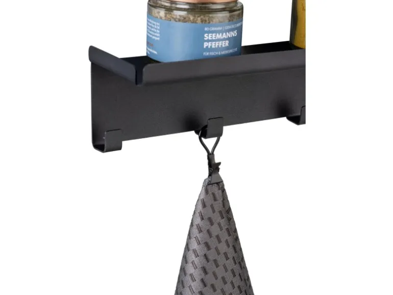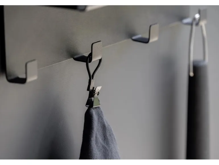Mit den Klemm-Ösen können Sie Ihre Textilien ordentlich und griffbereit aufbewahren oder feuchte Tücher zum Trocknen hygienisch aufhängen. Das nützliche Quartett passt durch das elegante Schwarz auch optisch in nahezu jede Küchen- oder Badeinrichtung. Mit einer Größe von (B x H x T): 1,7 x 5,3 x 1 cm bietet jede Klemm-Öse ausreichend Platz für gängige Küchentextilien und wirkt dabei nicht wuchtig.