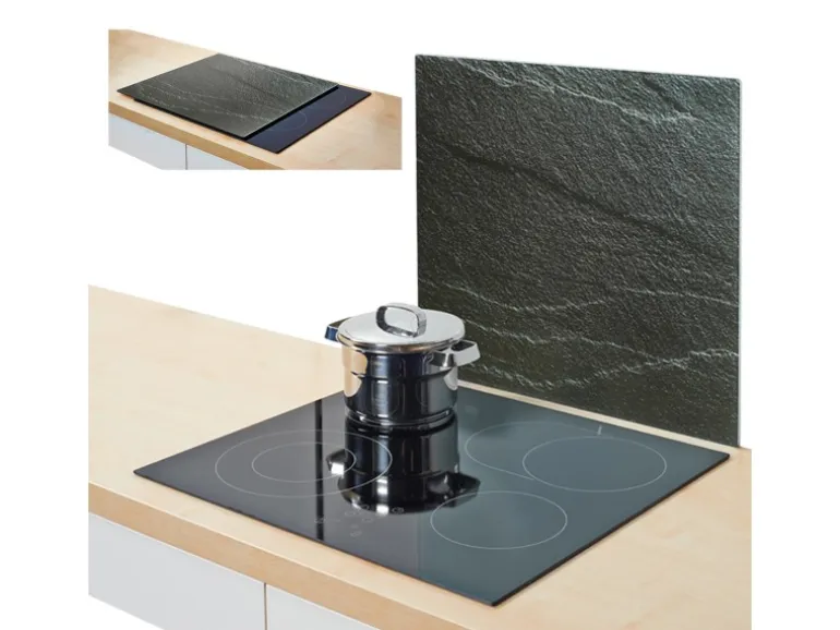 Die Herdabdeck-/Schneideplatten stellen Ihnen zusätzlichen Arbeitsplatz zur Verfügung und bringen mittels ihres hochwertigen Designs in Schiefer-Optik einen echten Blickfang in Ihre Küche. Dank der praktischen Antirutsch-Gummifüße hat die nahezu unzerbrechliche und bis 220° – 240° hitzebeständige Abdeckplatte stets einen festen und sicheren Stand.