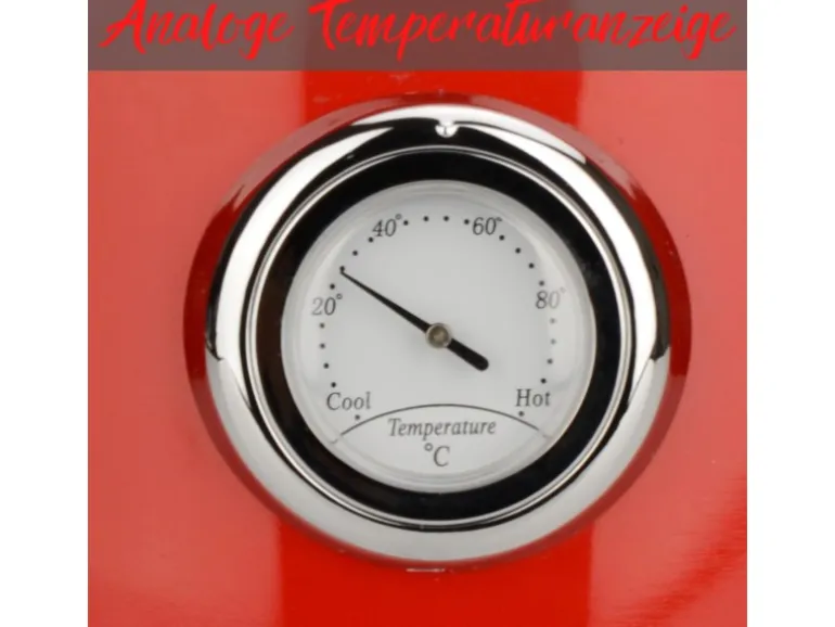 Das verborgene Heizelement in Kombination mit dem Cherry Red Finish verleihen dem Retro Wasserkocher das gewisse Extra.